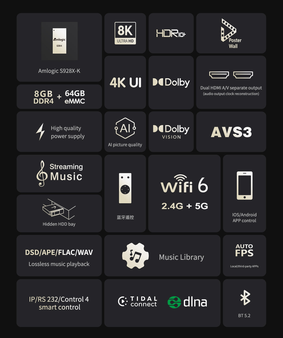 zidoo Z3000 PRO-8K Media Player, Amlogic S928X-K Processor 6G+64G,8K Android 11os, Support DV,HDR10+ and All HDR Technoly No 3D output